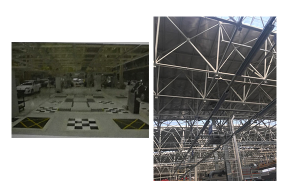 全景環視影像係統攝取車輛四周景物並通過控製器將四周景物合成一幅360°的全景圖,顯示效果類似從車輛上空俯拍的影像。全景影像拚接的精確程度將直接影響用戶的體驗。攝像頭和車輛在加工和組裝過程中,都可能與設計值產生偏差,這些偏差會導致全景影像的效果。全景環視影像係統的整車下線標定就是為了根據實際車輛進行標定以保證全景影像的效果。標定係統由標定主控係統,車輛擺正器,標定板,工藝照明設備組成。